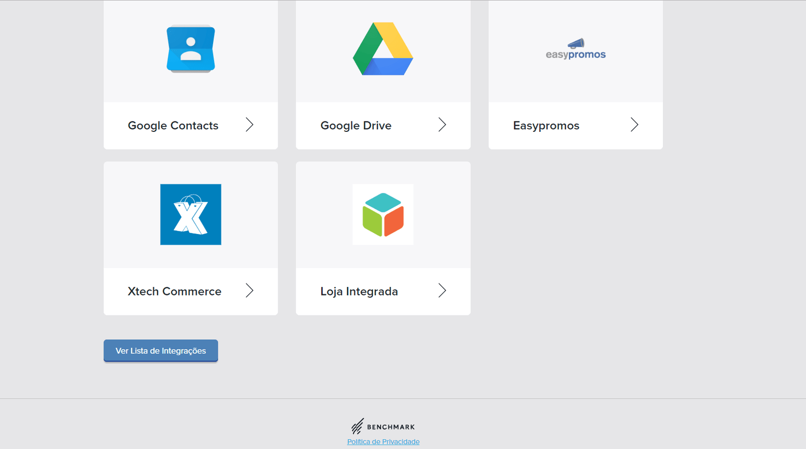 Com a integração você poderá coletar os endereços de e-mail de seus clientes que estão na Loja Integrada para a sua conta do Benchmark e cada novo contato que for adicionado na sua loja será automaticamente adicionado em sua conta da Benchmark.