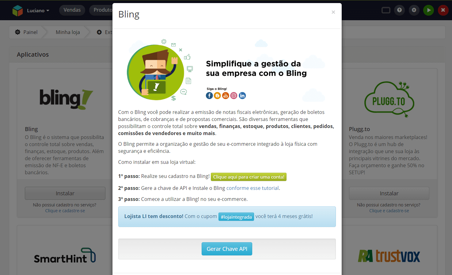 As integrações com dezenas de plataformas de loja virtual e grandes marketplaces, bem como empresas de logística e distribuidoras, fazem do Bling o ERP referência para quem quer crescer no o e-commerce.