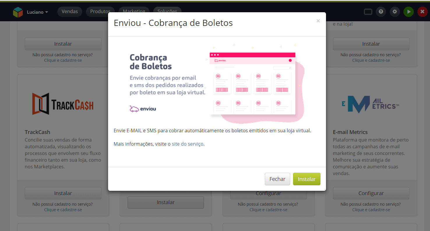 Basta instalar o app do Enviou pelo painel de aplicativos da Loja Integrada para identificar todo pedido realizado com pagamento via boleto.