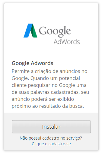Permite a criação de anúncios no Google. Quando um potencial cliente pesquisar no Google uma de suas palavras cadastradas, seu anúncio poderá ser exibido próximo ao resultado da busca.