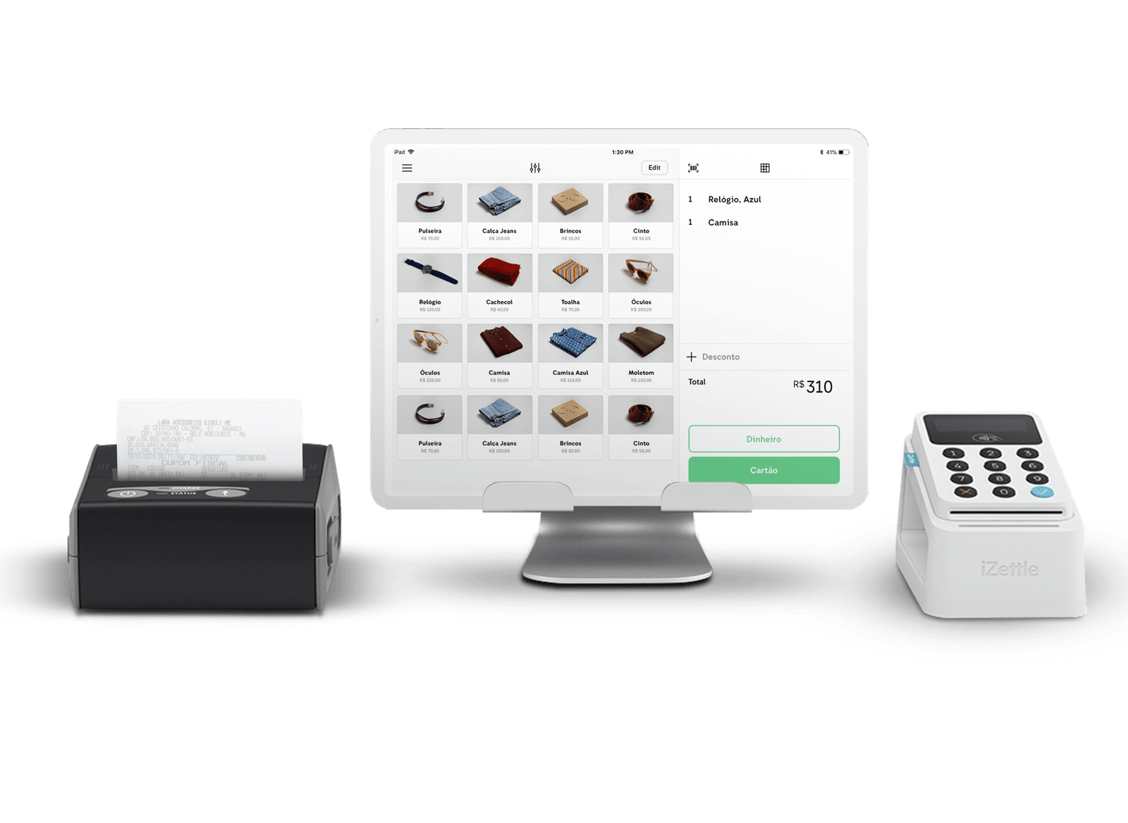 A iZettle, pertencente ao grupo PayPal, é uma solução completa para pagamentos e gestão de seu ponto comercial. Gerenciamento de estoque, relatório de vendas, emissão de NF-e e frente de caixa; tudo isso conectado a uma máquina de cartões para aceitar pagamentos no débito, crédito e parcelado.